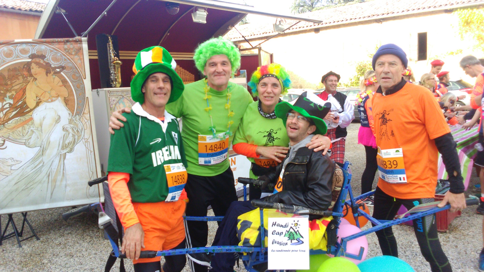 Samedi sous un beau soleil, dans une ambiance conviviale et très festive, sur un beau parcours agrémenté de bonnes dégustations notre AS LYON 1 Solidaire faisait partie d’une des 5 équipes “joëlettes” engagées sur le 12 Kms avec Handi Cap Evasion qui a cette année été choisie par les organisateurs comme association invitée et bénéficiaire du Marathon International du Beaujolais à Villefranche/Saône.