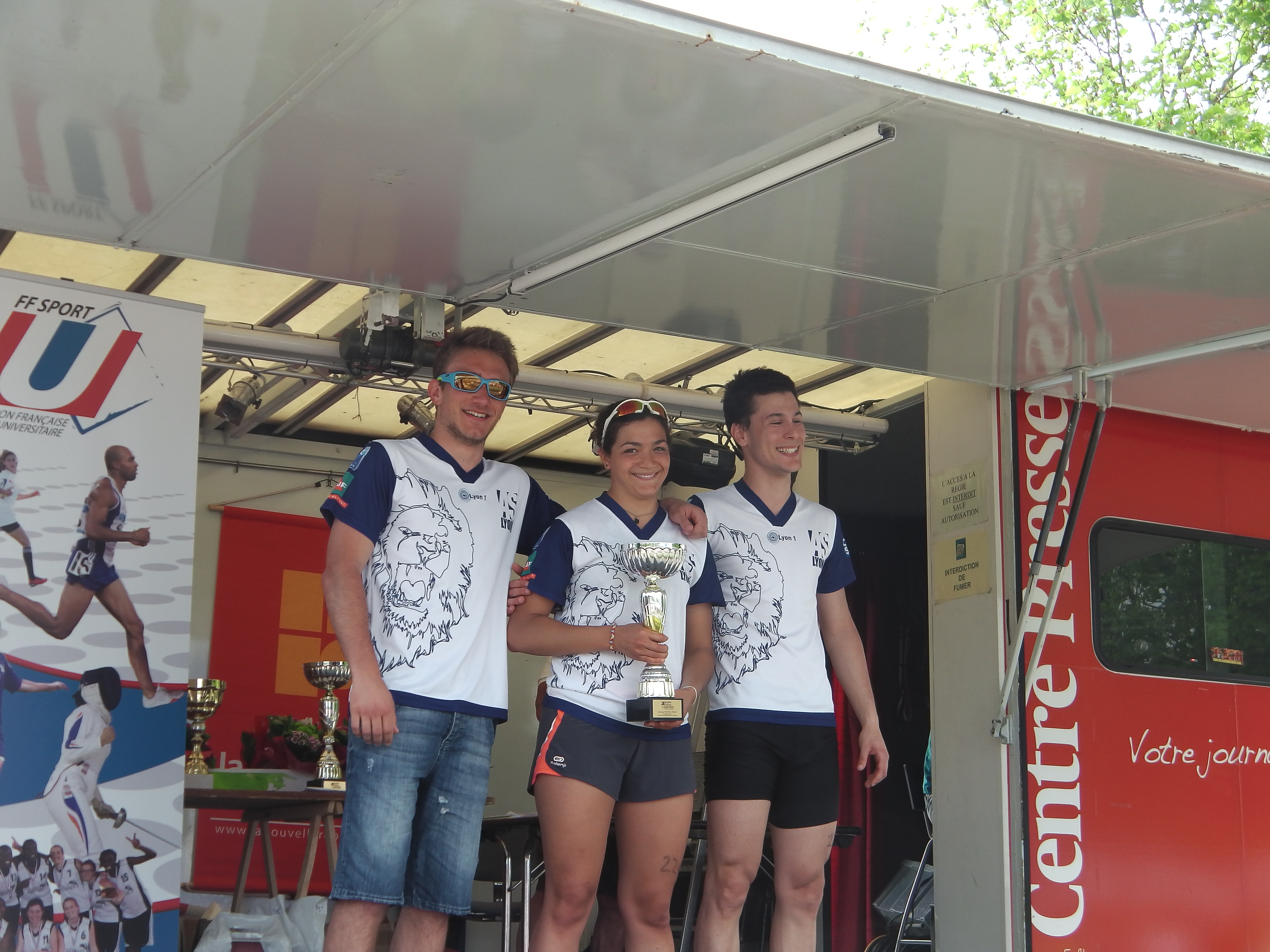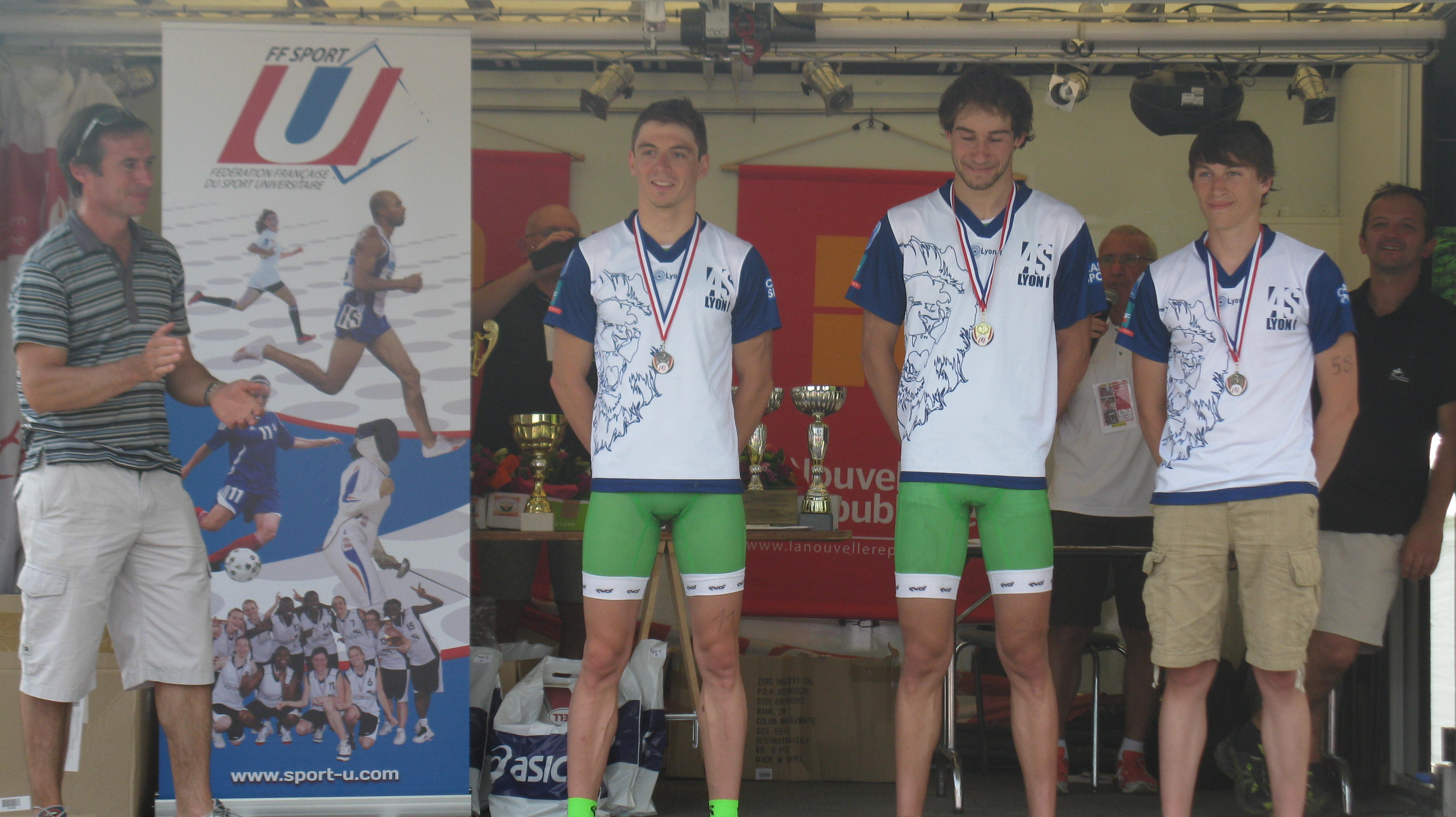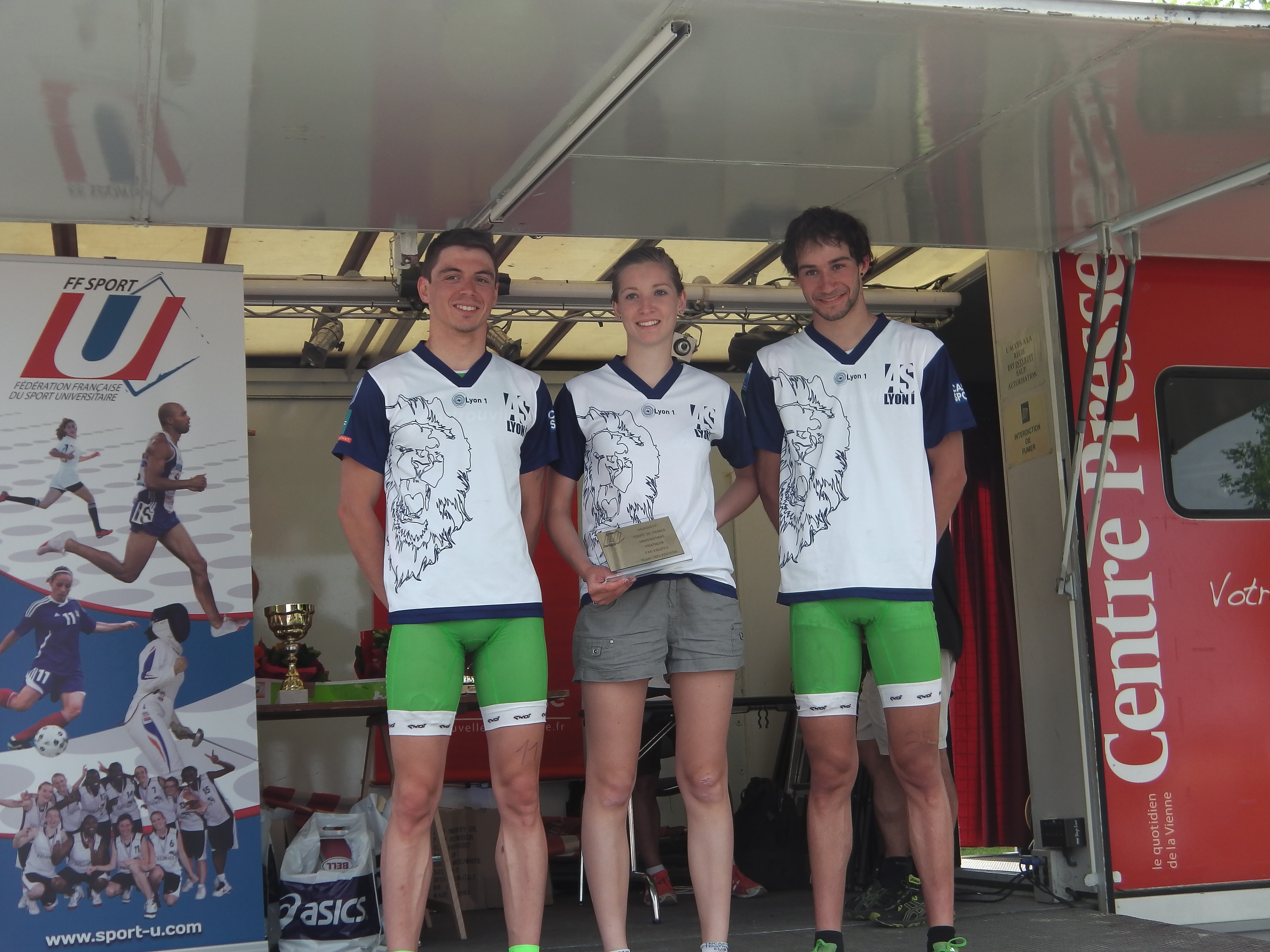 - Podium individuel garçons CFU 2013 Triathlon 2ème Sébastien COURT LYON 1, 1er Audric LAMBOLEZ Lyon 1, 3ème Yoann SABY LYON 1